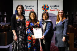 Creative Lives Awards 2021 Winners Run by Creative Lives, the Creative Lives Awards are open to any amateur group or project based in the UK and Ireland. In 2021/22 we celebrated resilience and imagination during the Covid-19 pandemic, shortlisting a fantastic 31 groups that carried on being creative despite the challenges they faced. Meet the 12 wonderful winners who attended our ceremony at Coventry Cathedral on 1 March 2022. ENGLAND WINNER May Project Gardens - a South London-based grassroots organisation whose mission is to empower marginalised groups to address poverty and access to resources, and to exert influence through sustainability and creativity. Ian Solomon-Kawall from May Project Gardens, England Winners, said: We are proud of the work that May Project Gardens did during the pandemic by continuing to provide a safe space for our Hip-Hop Garden participants. This included using Hip-Hop to help them express their feelings about lockdown, maintaining their wellbeing by keeping fit with outdoors training using music, alongside building a natural straw bale classroom that has slowly been turned into a music studio. IRELAND WINNER Black Box Projects - a Belfast-based community run for and by people living with learning disabilities, supported by a team of dedicated volunteers from within the Black Box venue in Belfast. Shifting to online delivery, the group stayed connected through a diverse programme including a book club, discussion group and music sessions. Seonaid Murray from Black Box Projects, Ireland Winners, said: We are really proud of our Black Box Projects Volunteer Team for bringing so much enthusiasm, creativity and support to our projects and activities. Our group members were socially isolated before the pandemic so it was really essential to keep connected and sustain a regular routine for our group while many services had stopped. We are delighted for the recognition from the Creative Lives Awards! SCOTLAND WINNER Overdrive Dance Company - a group that promotes dance for boys and young men living in Glasgow. Each person harnessed their skills to shift work online; showcasing creativity and resilience throughout. They reworked their upcoming stage performance 3billion to be presented on screen instead. Hayley Earlam from Overdrive Dance Company, Scotland Winners, said: I’m so proud of the young people of Overdrive Dance Company. During the pandemic, we delivered online Zoom sessions to keep the young people connected and to continue having dance in our lives. Over this time, they went above and beyond to keep being creative and they supported each other through tough times. I couldn’t be more proud of their commitment, resilience and creativity. WALES WINNER Cricieth Creadigol / Creative Criccieth - a small, bilingual, seaside town on the coast of north-west Wales. In response to the pandemic, the community was encouraged to get creative through a series of imaginative voluntary-led projects. Catrin Jones from Creative Criccieth, Wales Winners, said: I am so proud that we responded to the challenges imposed by Covid-19 with compassion, energy and vision. We reached out, through varied creative projects to involve hundreds in the community, drawing on talents from across the generations and from all the districts of the town, contributing to people’s well-being and quality of life. The response from individuals and community groups to our varied imaginative projects have been fantastic. PEOPLE’S CHOICE AWARD WINNER (chosen by the public in an online vote) Drumgoon Hill Old Graveyard Committee - a group who presented Hooley in the House, as part of the national Culture Night festivities in County Cavan. Recording footage that combined music, singing and storytelling, the event was shared online for the whole community to engage with and enjoy. Gemma Kettle of Drumgoon Hill Old Graveyard, Ireland Runner-up, said: We're proud of the work that the Drumgoon Hill Old Graveyard team does, because of the many fantastic people it involves. Over the pandemic we delivered the online event Hooley in the House and this helped to safely showcase the wonderful talent and creativity of the Cavan area while overcoming the restrictions which impacted on the local community. We feel honoured, happy and humbled to be recognised. PEER AWARD FOR EXCELLENCE (chosen by the shortlisted groups) May Project Gardens was awarded its second accolade of the evening, alongside co-winner Celf-Able - an inclusive, disabled-led art group from Wales that moved its weekly sessions online, to continue advocating for accessibility across arts. Sue Patch from Celf-Able, recipients of the Peer Award for Excellence, said: We are so proud and delighted that the work Celf-Able has been doing over lockdown has been recognised and appreciated. We were fortunate to get enough funding to allow us to send out art packages to our members and a Zoom subscription so we could all meet up virtually. We now meet face to face and continue with ‘zoom in the room’ for those unable to attend. We know from our members how much they appreciate our service - albeit in a different form - and will continue to keep going in whatever media we can! LOCAL HERO AWARD With the awards taking place in Coventry as part of the UK City of Culture, the Local Hero Award was awarded to Mark Gibbins of Coventry Men’s Shed. Mark been running this group for eight years, with little funding and by giving up huge amounts of his free time to support men who are vulnerable and at risk of suicide. CELEBRATING DIVERSITY AWARD WINNER Coffee ’n’ Laughs - a friendship group for women “of all faiths and none” in the ethnically diverse area of Maindee, Newport in South Wales. Sue Lewis from Coffee ’n’ Laughs, Winners of the Celebrating Diversity Award, said: Coffee ’n’ Laughs is a great gang, and we couldn't have spent lockdown with a better set of friends. We natter, knit and stitch, and didn't miss a beat when we were sudd