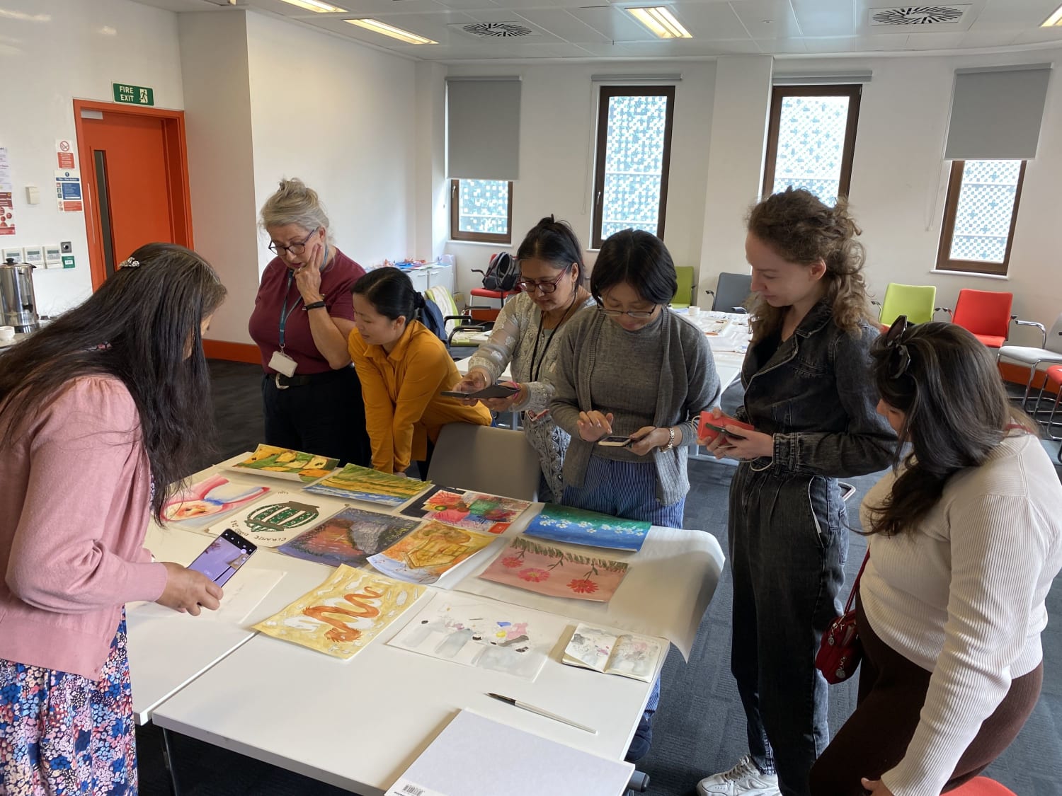 About us What we do Sanctuary Seekers Creative Lives was invited by Cardiff Council to establish a new creative group for refugees, asylum seekers and migrants in Cardiff Central Library, as part of Cardiff’s City of Sanctuary status. Creative Lives has worked with a number of Welsh public libraries since 2018, supporting new and established creative groups, including a series of creative workshops for the Improving Conversational English group in Cardiff Central Library. These new sessions were focused on providing a welcoming space for refugees, asylum seekers and migrants to take part in creative activity, while providing opportunities to make new friends and improve their English language skills, with refreshments and hot drinks. This pilot work engaged with 137 participants, and linked with established events such as Welsh Refugee Week. The additional benefit of hosting the sessions in the library was that we could link participants to other Council services co-located in the same building, including welfare and benefit advice, housing and homelessness support, digital and language skills, bus passes, as well as books in multiple languages - thereby helping them to integrate more fully into Welsh society. Participants reported feeling happier and more positive after taking part. “Thank you for such a wonderful session. Who would have thought I could be so creative?” “I was so stressed out this morning, and this is making me feel so much better.” “I feel so lucky to have found this group. And I will continue drawing when I’m back in China.” The Sanctuary Seekers workshops were part of a project which was supported by a grant from National Lottery Awards for All Wales. We're very grateful to Cardiff Hubs and Libraries for providing the venue, publicity and refreshments. Manage Cookie Preferences