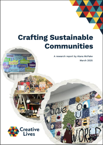 Policy & Research Reports & Publications Crafting Sustainable Communities A research project by Creative Lives, supported by the Scottish Graduate School for Arts and Humanities Crafting Sustainable Communities is a research project by Creative Lives’ PhD Intern Alana McPake from the University of Glasgow. Community craft groups were mindful of how and what materials they used, long before ‘sustainability’, ‘eco-friendly’, or ‘green’ made their way into our vocabulary. Yet their sustainable practices have often been overlooked. Our new report champions amateur activity as a force for environmental good. This report highlights the creative work of these groups, explores some of the barriers to doing more, and celebrates the role of community craft in working towards a more sustainable society. The following groups were interviewed as case studies for the research: Rags to Stitches – a weekly textile craft group for adults based at Sandy’s Community Centre in Craigmillar, Edinburgh. Acorn Quilters – a patchwork and quilting group in Broughty Ferry, Dundee. R:evolve Recycle – a social enterprise with shops in Cambuslang and Rutherglen, South Lanarkshire. Remake Scotland – a community reuse charity operating in Crieff, Perthshire. Knit and Natter – a knitting group that meets at Dundonald Castle and Visitor Centre, Dundonald, Ayrshire. Read the full report below (via ISSUU) or download a PDF copy. If you would like this report in a different format, please email us at [email protected]. Manage Cookie Preferences