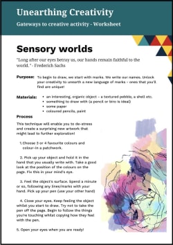 Gateway - Sensory worlds Unlock your creativity to unearth a new language of marks! This technique will enable you to de-stress and create a surprising new artwork that might lead to further exploration! Part of our Gateways into Creative Activity: a series of worksheets, videos and prompts for anyone who would like to have a go at a new artistic activity, or maybe rekindle a dormant creative interest, developed by Marion Cheung, Naz Syed, Creative Lives and Age Cymru, as part of the Unearthing Creativity project. Download worksheet (PDF) We are extremely grateful to the Arts Council of Wales for their support for this project. Manage Cookie Preferences