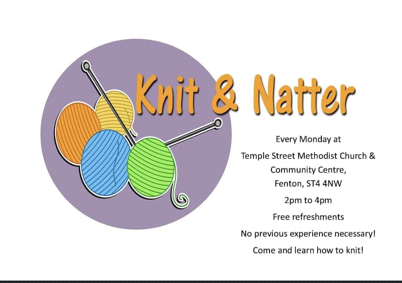 Resources Find a creative group Temple Street Knit & Natter Every Monday afternoon at Temple Street Methodist Church and Community Centre, The Knit and Natter group meet 2.00pm until 4.00pm. Free refreshments. No previous experience necessary. Come along and learn how to knit! For more information visit the Temple Street Methodist Church Facebook page. Manage Cookie Preferences